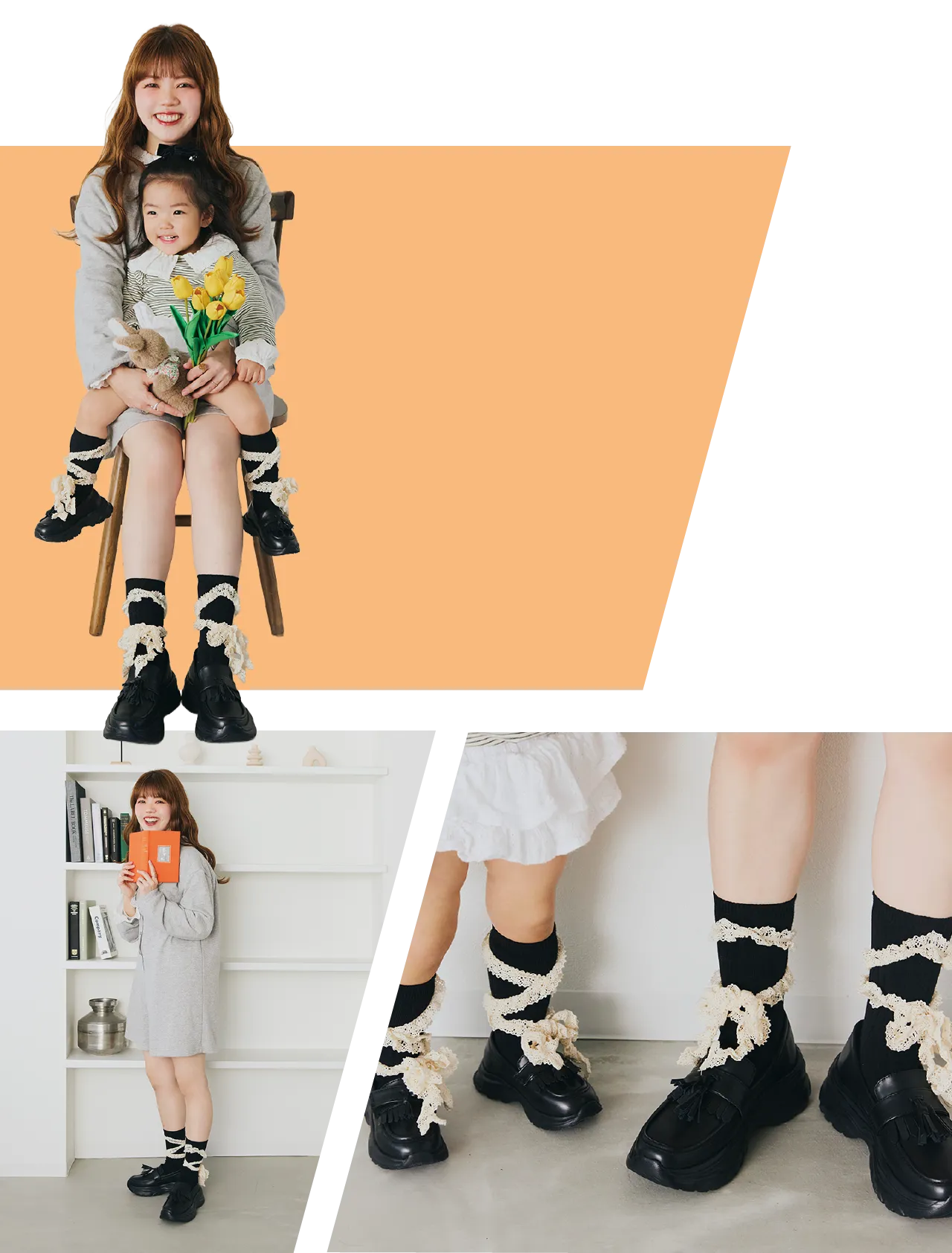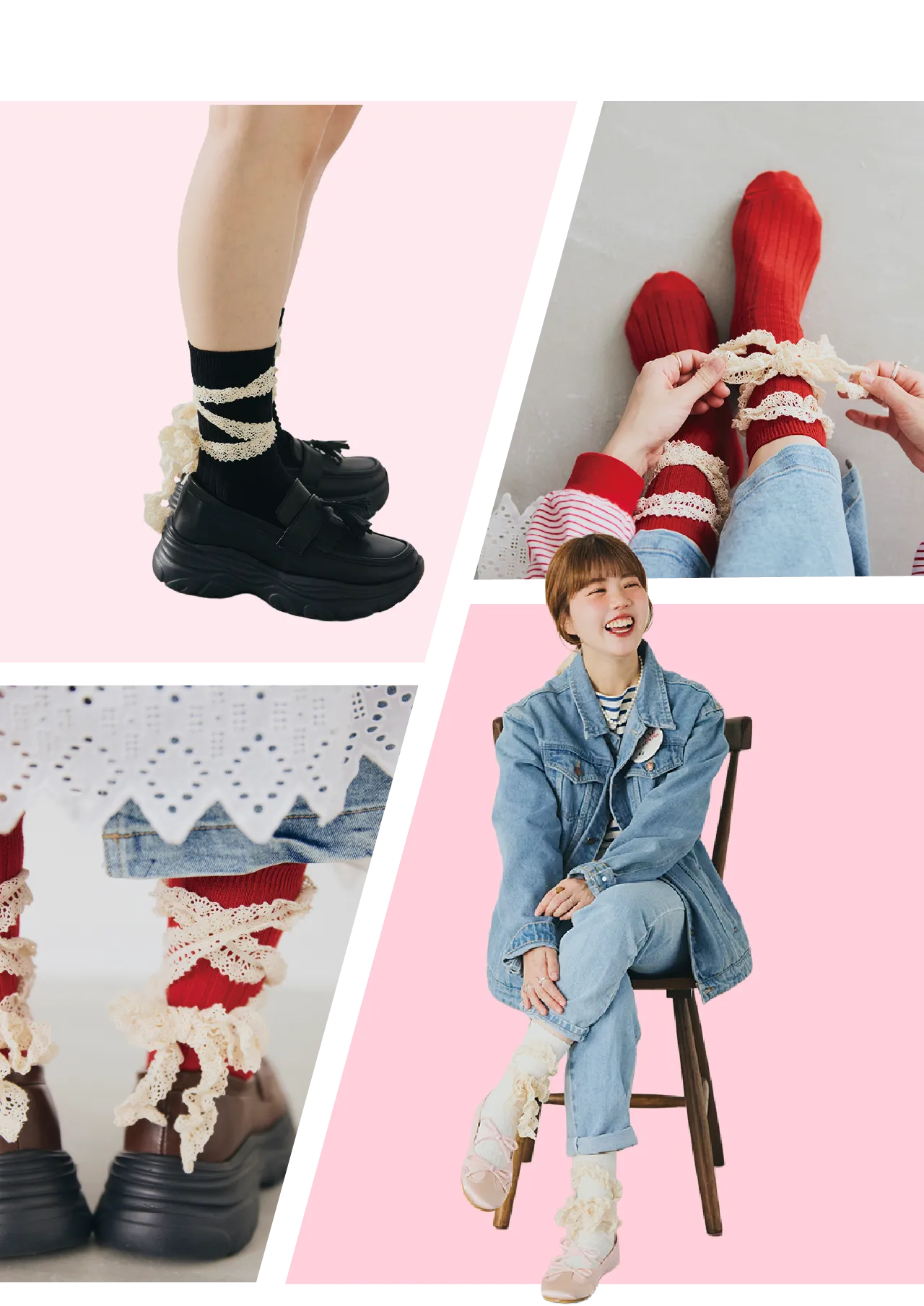 レディースレースアップリボンソックス