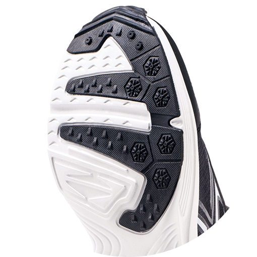 凹凸スパイクが地面をしっかりつかんで、走りだしをサポート。