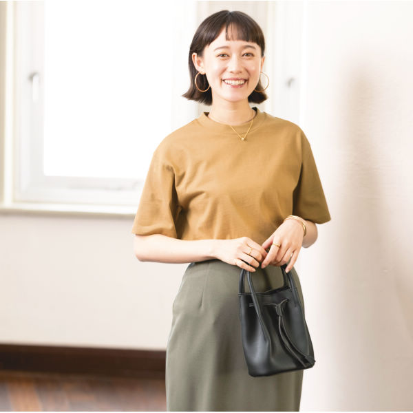 まるでお菓子のカヌレのような巾着バッグ。肩にかけても手で持ってもかわいい2way仕様。