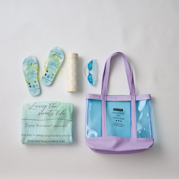 水に強いPVC素材のプールバッグ。しっかり荷物が入るマチで収納力◎