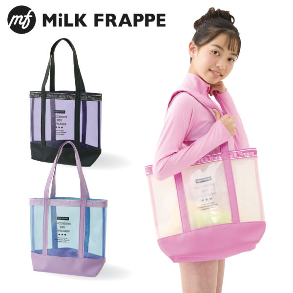 重さ(約)/320gMiLK FRAPPE サイズ(約)/底幅28×高33×マチ13cm 持ち手高:24cm 開閉部:38cm