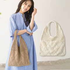 春夏にぴったりなクロシェ編みのトートバッグ。ナチュラルな風合いで、リラックス感あるスタイルを演出します。