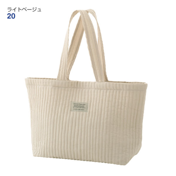 コットンのナチュラルな風合いと中綿入りでふんわりした優しい肌触りが特徴のバッグです。軽量で大容量なので、マザーズバッグ、通勤、旅行にも。