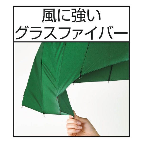 24本の親骨はグラスファイバーを使用しているので風に強く、軽量設計です。フォルムも美しく、持ち手には木を使用しているので高級感があります。