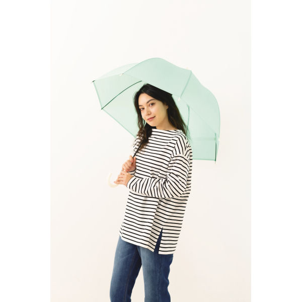 ドーム型の深張り傘だから、肩まですっぽり入れます。親骨は弾力性があり丈夫なグラスファイバーを使用。