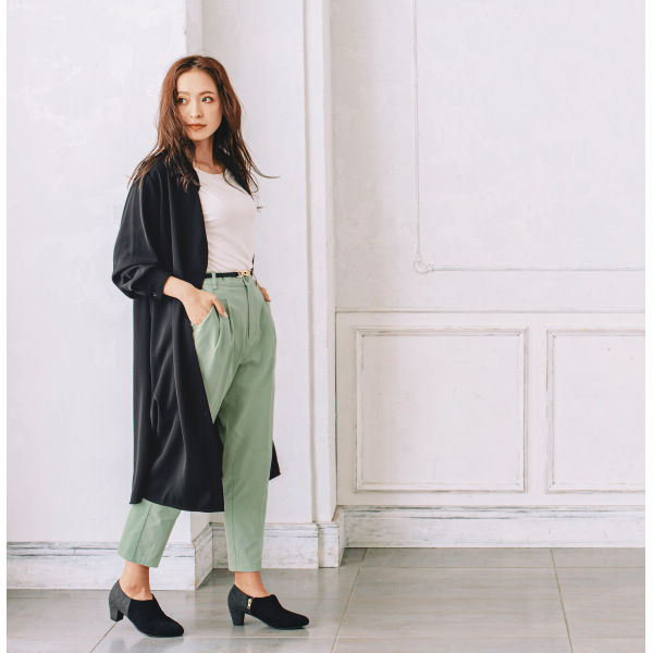 テーパードパンツは、ON/OFFどちらのスタイリングにもマッチするベストアイテム!腰周りともも部分はほどよいゆとりで着心地も良く、裾周りを細めに仕上げたシルエットはカジュアルな中にも女性らしさを演出。