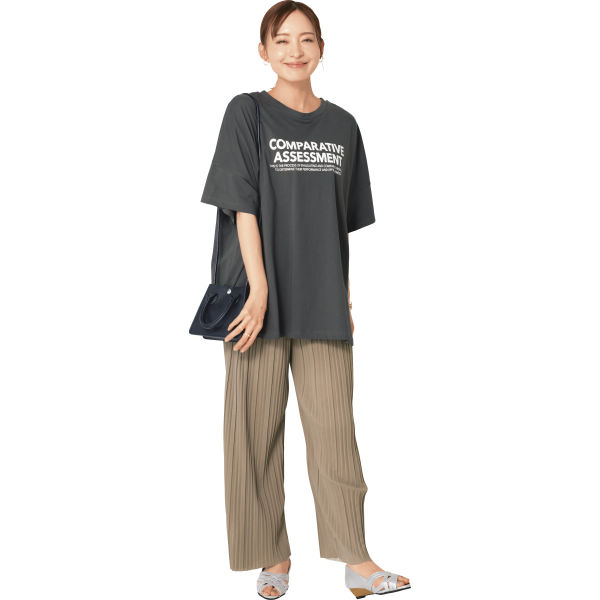 ホワイトが気に入り、残り2色も購入。ロゴ前にして、センターインして着てます。ゆるさがちょうど良く、スカートもパンツスタイルもいい感じです。着すぎて襟ぐりが少し伸びてきたかもですが、着たおしたらパジャマにします!