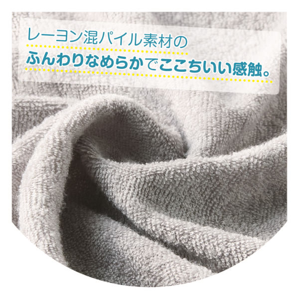 ふんわりなめらかレーヨン混パイル素材のパジャマが登場!ふわふわタオルを羽織ったようなここちいい感触。どなたでも着ていただきやすいゆったりとしたシルエットです。