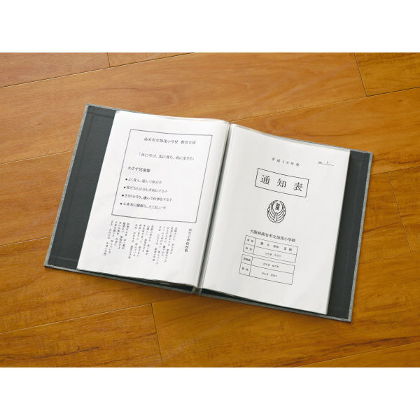 布張りなので、高級感があります。ポケットは12枚なので、小中高12年間分が保存可能。