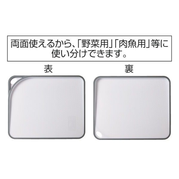 こぼれ落ちやすい食材をフチでキャッチ!もう作業台を散らかしません。フチ周りが滑り留めで作業台にピタッ。両面使えるから、「野菜用」「肉魚用」等に使い分けできます。