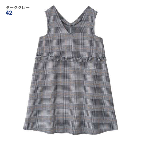 胸元フリルがポイント!親子リンクコーデもできるジャンパースカート。ニットやシャツと合わせるだけで、こなれ感のあるコーデが完成。