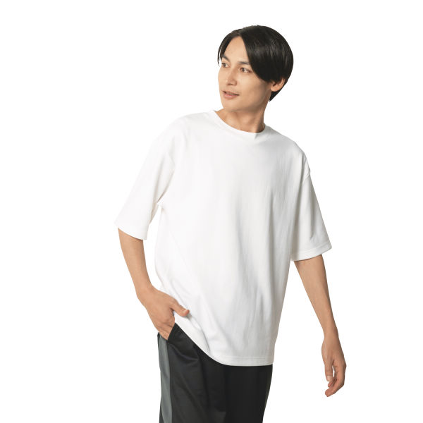 表面は厚みのある綿素材でキレイ見え、裏面はポリエステル素材でひんやりさらっとした着ごこちのTシャツ。