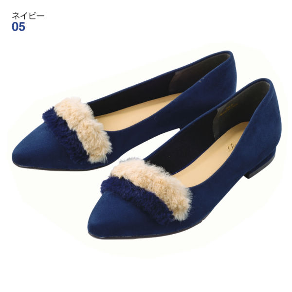 トレンドの"エコファー"を贅沢なバイカラーデザインに。履きやすいローヒールパンプス。