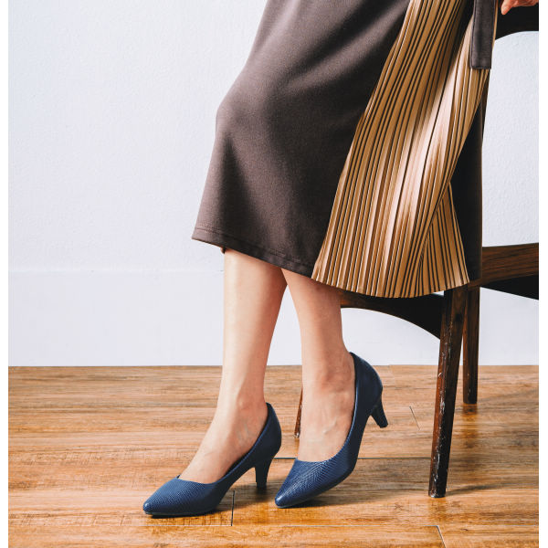 程よいヒール高さで歩きやすい。ポインテッドトゥで女性らしい足元に。豊富な10サイズ展開(21.5~26.0cm)