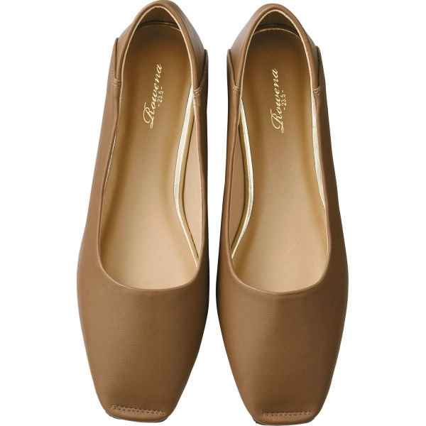 つま先からかかとまでやわらか素材。つま先のステッチがポイントのスクエアトゥパンプス。フラットで楽ちんなのに大人っぽく履けるシルエット!