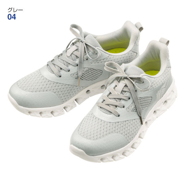 通気性の良いニットを使用し、不快な足蒸れを軽減。側面には目の粗い通気織り。アッパーに施された熱圧着加工で縫製を減らし、足へのストレスを軽減。 ソール(底)高さ/約4.0cm重さ/26.0サイズで片足約245gカップインソール(足をやさしく包み込む。)軽量設計(当社比)