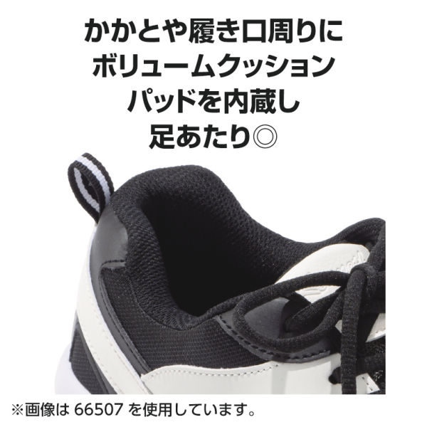 3E幅広踏み出しやすいつま先角度厚手ラバーでの耐久性◎屈曲性の良いソールカカトや履き口周りに優しいボリュームクッションパットを内蔵クッション性の良いハニカムインソールで履き心地◎ 3E相当ソール(底)高さ/約3.5cm重さ/26.0サイズで片足約290gカップインソール(足をやさしく包み込む。)反射材付