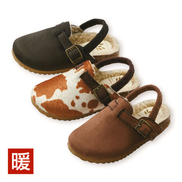 ふわふわボアであたたかいサボサンダル♪かかとにはゴムベルトが付いているので、足をしっかり支えます。