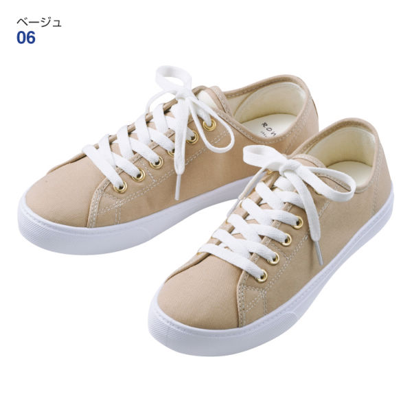 ナチュラルカラーが春らしいキャンバススニーカー。汚れが付きにくい撥水仕様♪