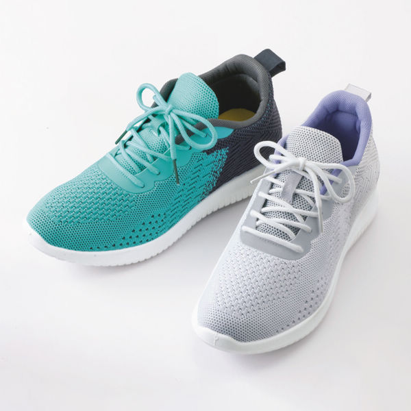 -機能性-1屈曲性の良いソール 2履き口パッド 3通気性の良いニット素材 4かかとのブレを軽減するカウンター付 ソール(底)高さ/約3.5cm重さ/23.5サイズで片足約230g軽量設計(当社比)