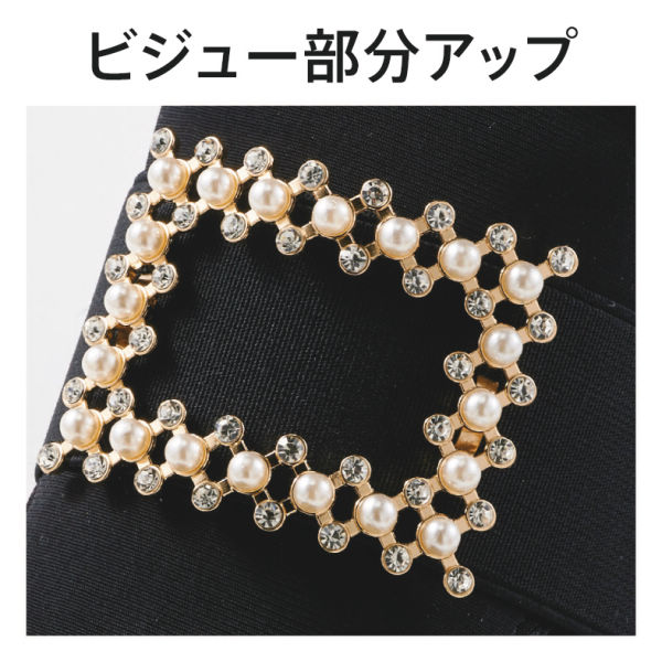 ビジューバックルが輝くウェッジソールスリッポン。エレガントな雰囲気&高級感があり、カジュアルになりすぎない優れもの。