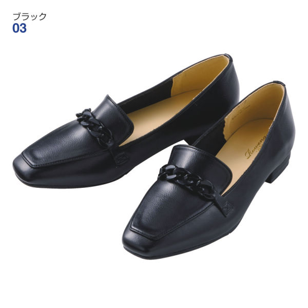 チェーン飾りが華やかな印象のパンプス。通勤にもデイリーにもマッチするデザイン。