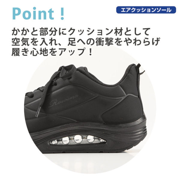 ソール(底)高さ/約4.0cm重さ/23.5サイズで片足約223gエアクッションソール(かかと部分にクッション材として空気を入れ、足への衝撃をやわらげ、履きごこちをアップ。)