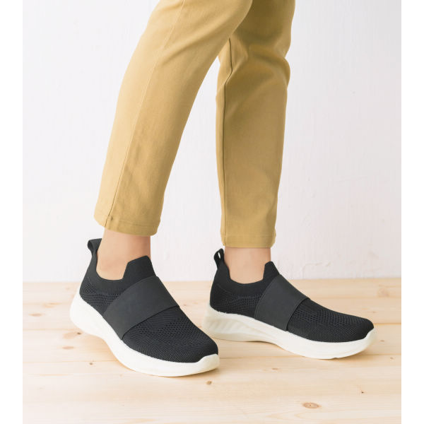 甲部分のゴムベルトでフィット感も良く歩きやすい。インソールはクッション性◎履き口はソックスのようなソフトな足あたりで脱ぎ履きも楽ちん。 ソール(底)高さ/約3.0cm重さ/23.5サイズで片足約230g伸縮ゴム軽量設計(当社比)