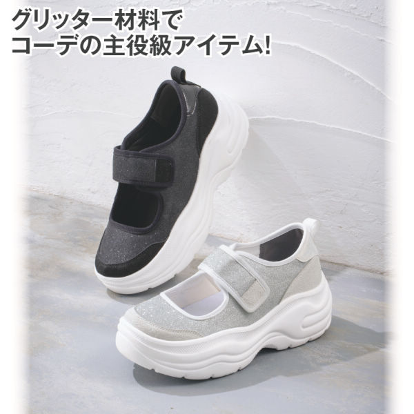 6.5cmの厚底とグリッター材料でコーデの主役級アイテム!