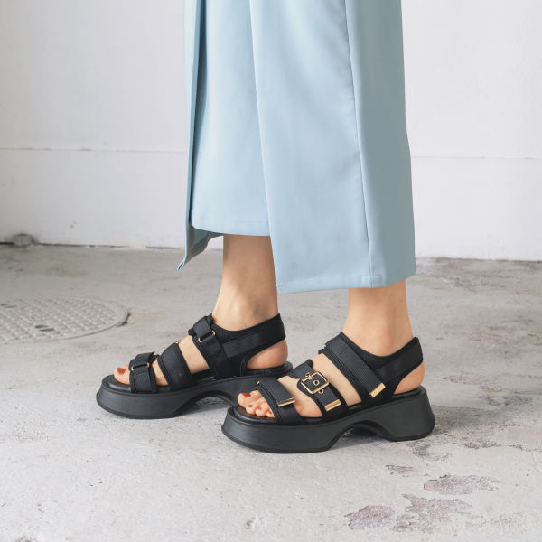 サンダルを履くとベルトが擦れて痛いことが多いけど、この商品はベルトのところにもクッションがついているので長時間履いていても痛くなりませんでした。低身長なので、厚底のおかげで微妙に長いボトムスを引き摺らなくて済むのも助かります。